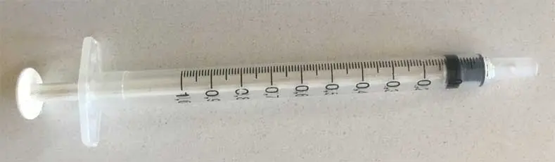 • Ear Syringes, 1ml, skinny | I always have a stack of these in the house; photo below