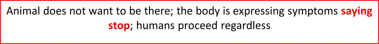 • These are symptoms just from being in this facility. The dog will know based on frequency where he is, that he is not safe nor is it a good place for him to be. The other animals in the facility will be messaging this through vibration. He will be able to feel this, sense this and smell fear.