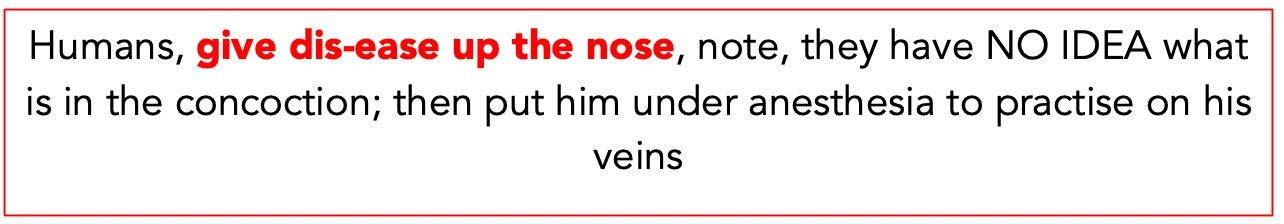 No one should be injecting anything into any being where they do not know what is in the needle, where it goes in the body, the synergy of the product with another, what it does to the body and the implications on the body and energy fields long-term. To follow is not an excuse to harm. To do otherwise, is unethical, and a violation of the code “do not harm” which EVERY medical partitioner is supposed to uphold, live by, and which every patient is counting on them to do so.
