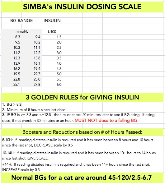 This is where joining DCI is crucial as soon as diagnosis is received so you can understand what is going on in the body, and how to set the dosing for the insulin. They will provide a scale and dosing requirements based on your data collection to date. They deal with a lot of cats and have the experience, and you can see what other people are doing so the forum is a vital source of information and resources.