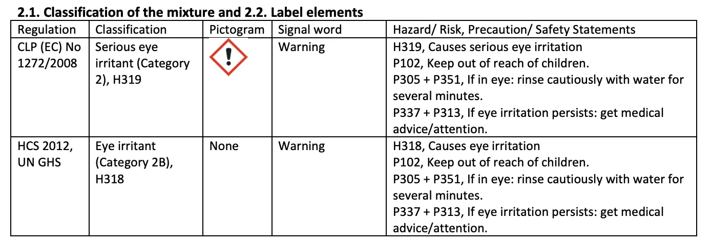However, on the international MSDS the symbols are shown as poison. If it is poisonous to the eye, it is poisonous to ALL the cells of the body.