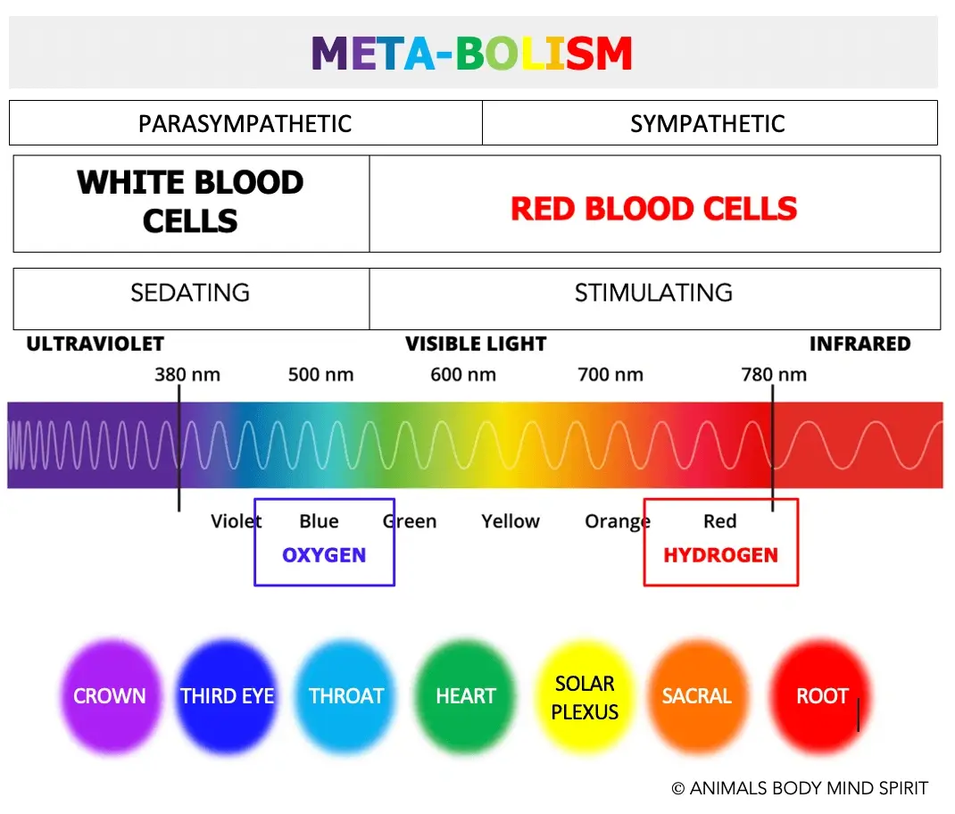All life on this planet is light. Everything alive on this planet is light. Light is a spectrum of colours. All life processes light through the body especially through the eyes while also emitting light in wave lengths, the spectrum emitted is dependent on the health of the being. Variety of colour and exposure to colour encompassing what we wear, the colours in our environments and what we eat all matter as each has a frequency and vibration and nourishes our wheels of light, our chakras and thus our aura. This applies to the animals too, the colours they wear, the colours of their beds, sleeping areas and what they are fed, and the colours in their environments.