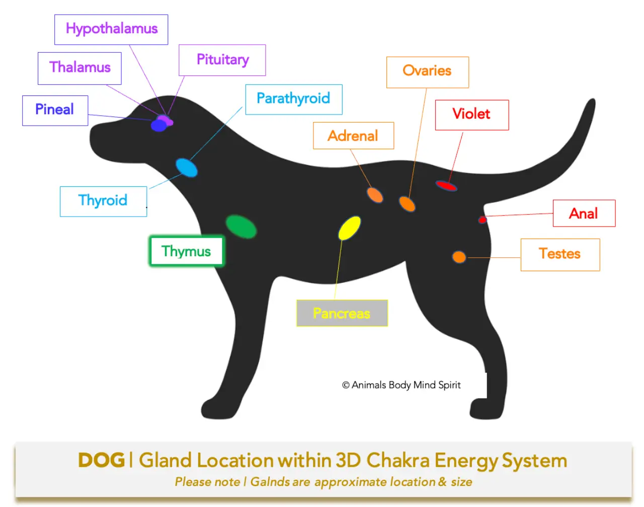 This gland is usually worked on in conjunction with the Third Eye Chakra. Animals who are not connected to their spiritual side, their higher self and their collective need work here. Also, any animal hit here, needs work and much healing.